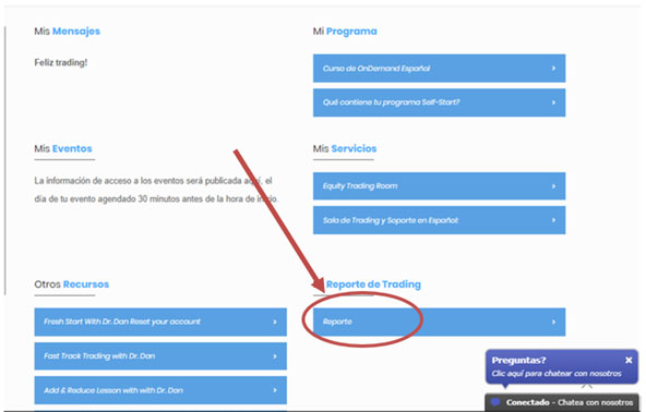 Encuentras un video que te explica paso a paso como ver tus reportes de trading en la academia, en el módulo Primeros Pasos ¿Cómo ingreso a la sala de trading y soporte en vivo?