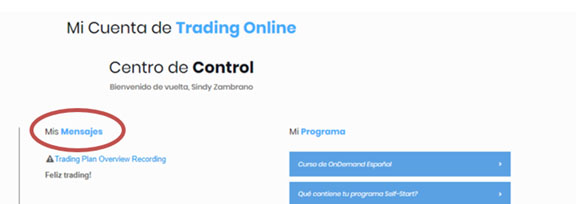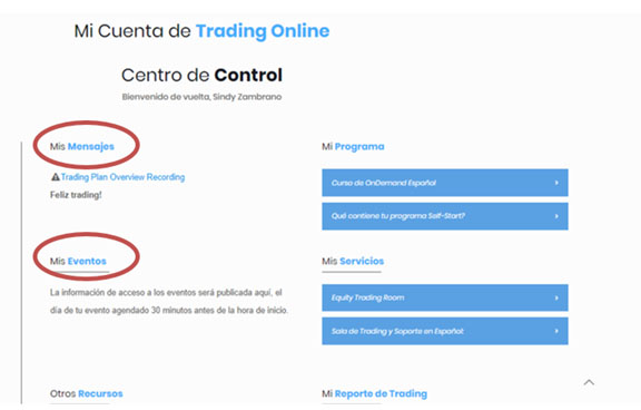 Ingresas por tu centro de control, vas a la sección “mis servicios” y das clic en “Sala de trading y soporte en español” como se indica en la imagen