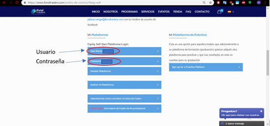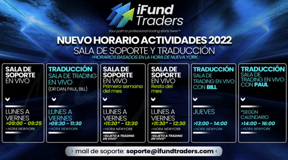 Soporte técnico: soporte@ifundtraders.com o en la sala de soporte en el horario designado.