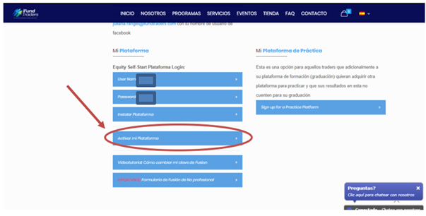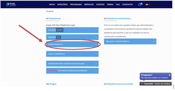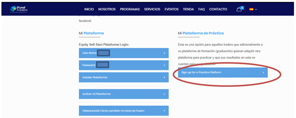Ingresa a IFundTraders.com y ve a la sección de servicios, como se muestra en la imagen, donde encontraras el link para adquirir la plataforma. Llena los datos y en 48 horas tendrás acceso.