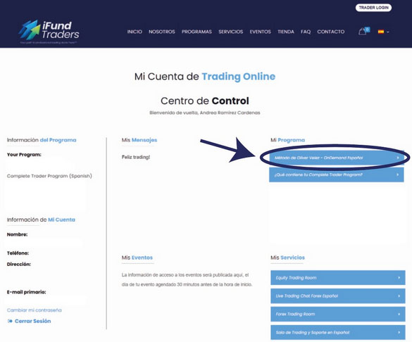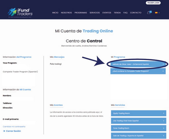 Si haces parte de Complete Trader Program y no te aparece el enlace de ingreso a los videos de El Método de Oliver Velez OnDemand que se encuentra en la sección “Mi programa” en el centro de control como lo muestra la imagen, debes informarlo al correo a soporte@ifundtraders.com, no olvides hacerlo desde el correo electrónico que tienes registrado en IFT.