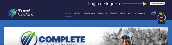 Ingresas a www.ifundtraders.com y allí vas a la esquina superior derecha como se indica en la imagen das clic en “Trader Login”, digitas tu usuario y contraseña, clic en “Submit”.